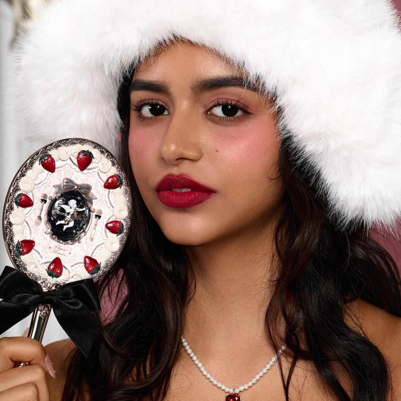 با الهام از کیک توتفرنگی شیرین و جزئیات خاص مانند خامه، توتفرنگیهای درخشان و کوپید طلایی، این آیینه حس لطافت و عاشقانهای را القا میکند که آن را از سایر آیینههای دستی متمایز میسازد. -