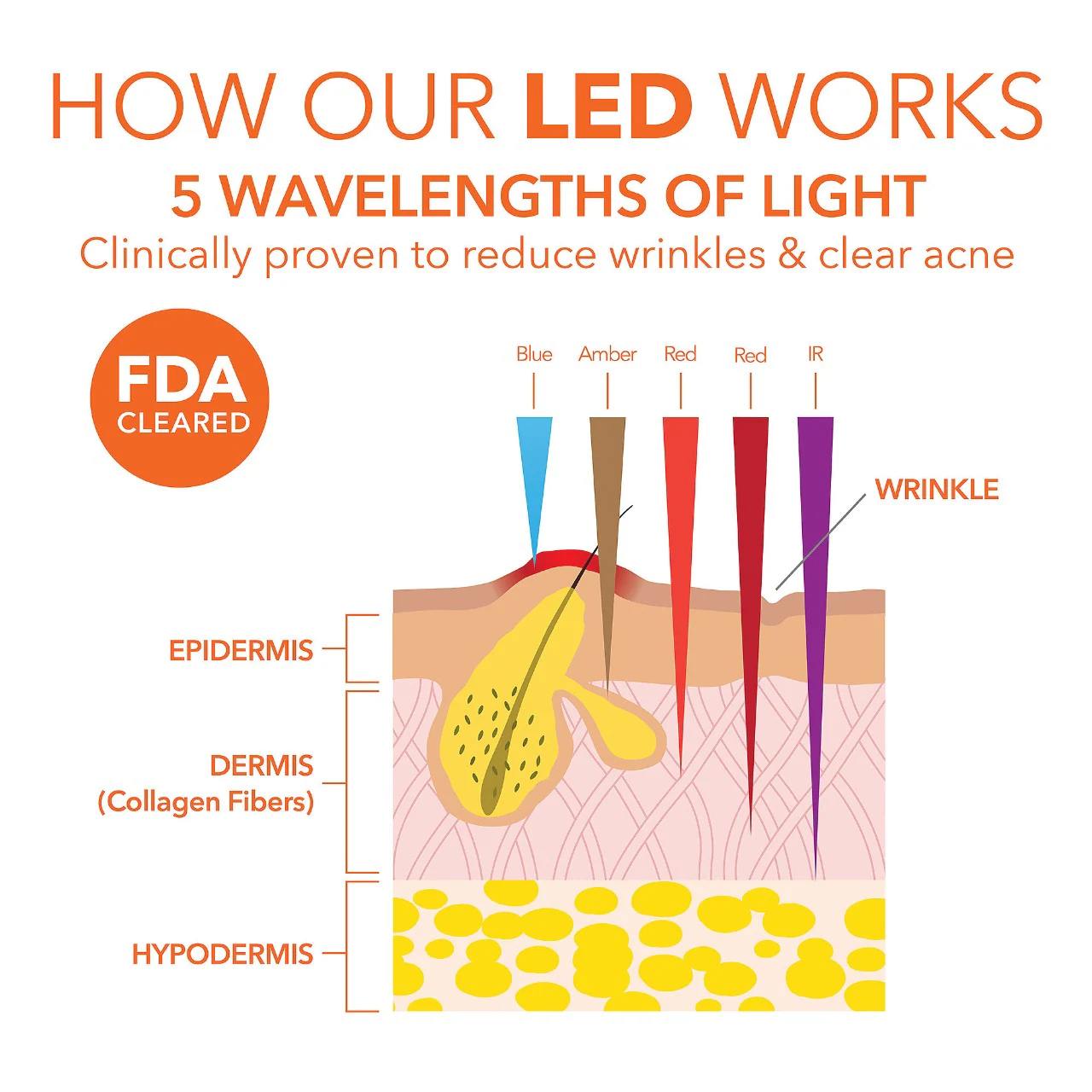 یک دستگاه LED پاکشده توسط FDA برای صورت که چین و چروکها و لکها را هدف قرار میدهد تا پوست صافتر و شفافتری را تنها در سه دقیقه بهوجود آورد.