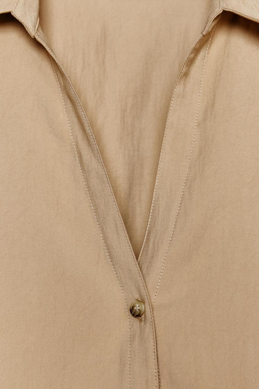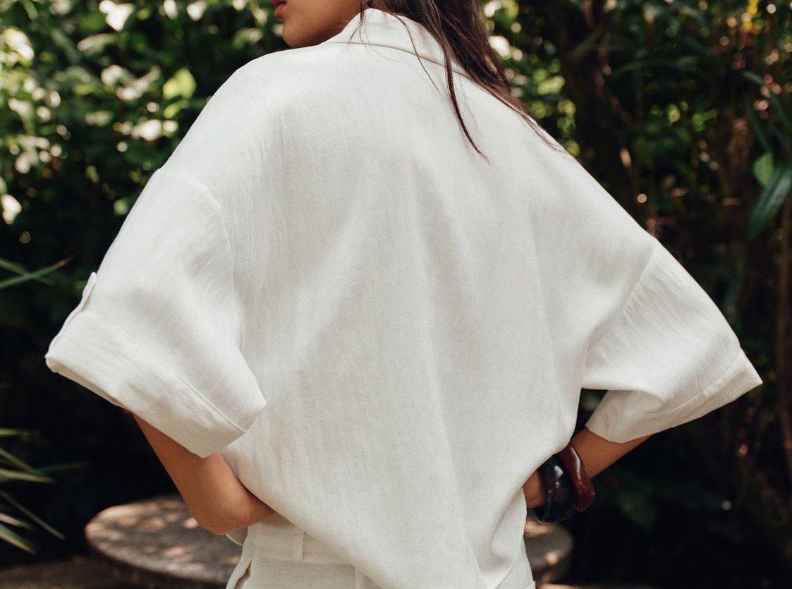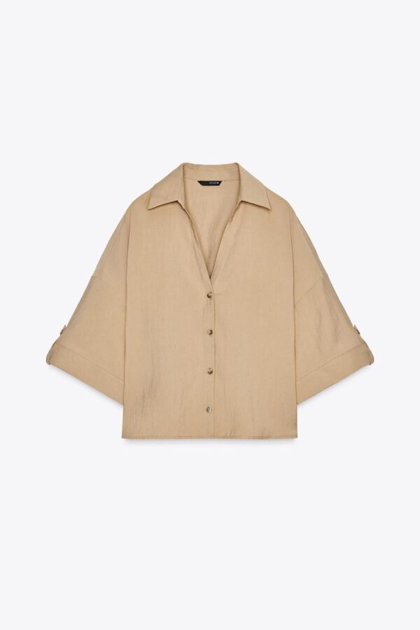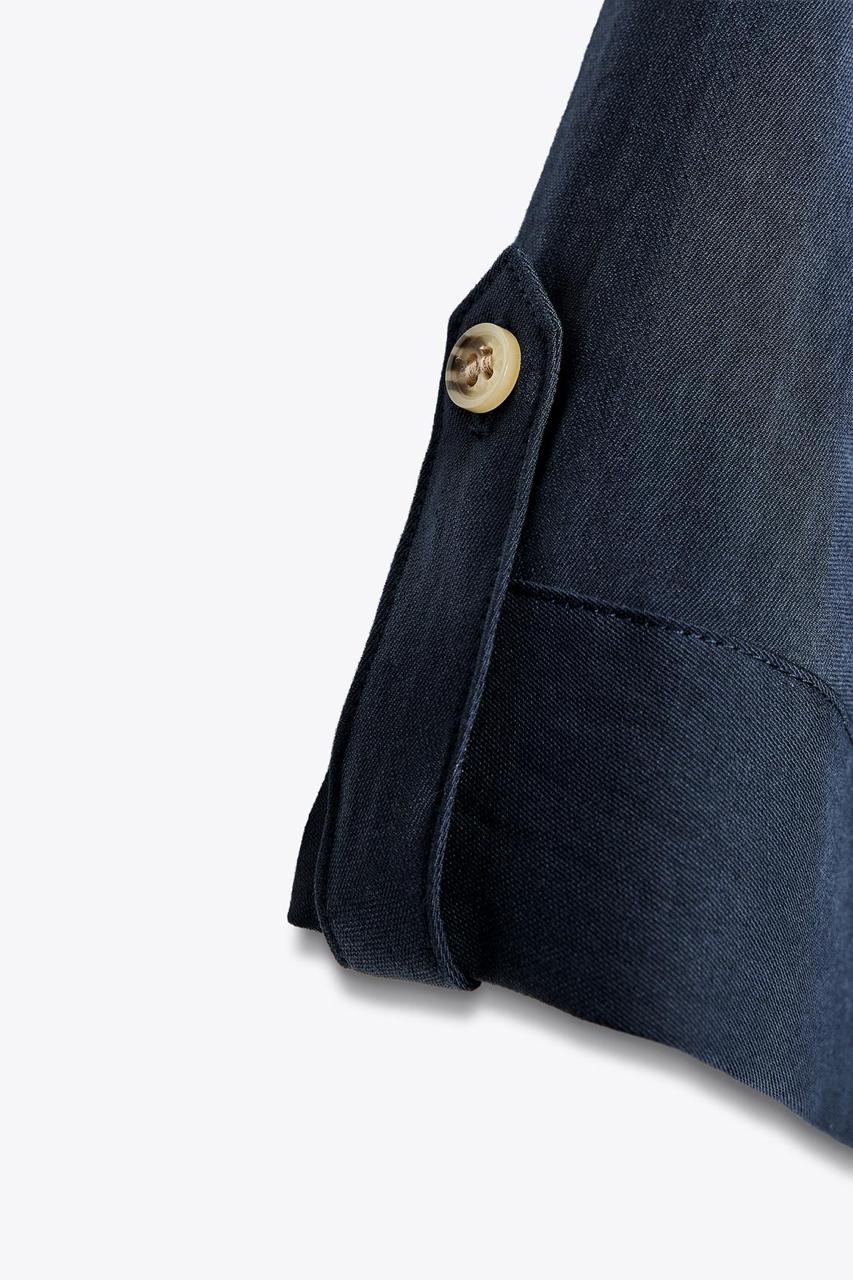 یکی از ویژگیهای برجسته مانتو آستین سه ربع زارا، یقه برگردان هفت است که ظاهری کشیده و مدرن به آن میبخشد. آستینهای کوتاه و گشاد این مانتو آزادی حرکت مناسبی را برای کاربر ایجاد میکند و باعث میشود در طول روز احساس راحتی داشته باشد. وجود دکمه و زبانه در جلوی مانتو، امکان بسته شدن آسان و تنظیم دلخواه را فراهم کرده است که از نظر زیبایی و کاربردی بودن بسیار اهمیت دارد.